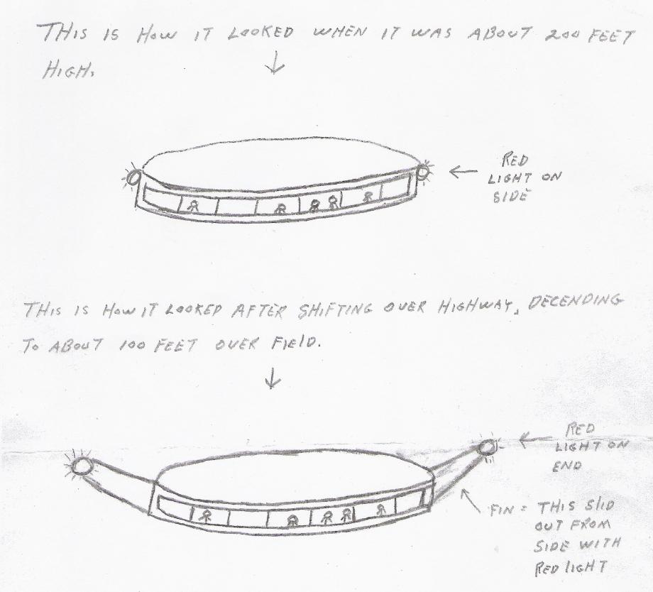 On the morning of September 20, 1961, Barney Hill sketched the craft that he had observed around midnight on September 19, 1961. (Copyright protected. All rights reserved.)