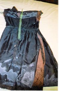 Betty stated that her favorite blue dress was in fine condition when she dressed for her ride from Eastern Ontario to Montreal. She and Barney went sightseeing in Montreal and then travelled east toward New Hampshire. They stopped briefly for a snack in Coaticook, QE and Colebrook, NH, before heading south on US Rt. 3. She stepped out of the car to observe the UFO through binoculars at the Mt. Cleveland picnic area and at the Old Man of the Mountain. This was her last conscious memory of exiting her vehicle until she arrived home at 5:00 on the morning of September 20. When she undressed she discovered that her dress was inexplicably torn in several areas. Her activities on September 19 couldn’t possibly have resulted in the extensive damage. There was a two inch tear in the stitching at the top of her zipper and a one inch tear in the thick zipper fabric. The lining was torn from waist to hemline, and the hem was torn down on the same side. Knowing that it needed to be repaired, she placed it in her closet. When she finally removed it she discovered that it was partially coated in a pink powdery substance. This pink powder had saturated the areas of the dress where Betty stated her alien escorts touched it. She hung it on her clothesline, and the powder blew away, but the dress had been reduced to a rag. It was stained pink, and the fiber was degraded.