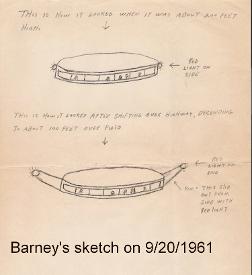 As he entered the car he saw the craft moving in his direction. He shifted the car into gear and sped down the highway. (This was part of Barney's conscious memory and was not brought forth by hypnosis for the first time. See the "Betty and Barney Hill Archive" on the menu above.)